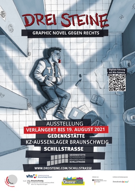 Bis zum 19. August 2021 (verlängert) wird dort die Sonderausstellung „Drei Steine“ gezeigt, die mit ihren Begleitangeboten aus dem Programm „Demokratie leben! Braunschweig“ gefördert wird. Sie veranschaulicht anhand von Bleistiftzeichnungen, Studien, Storyboards und Farbdrucken das Entstehen der gleichnamigen Graphic Novel. Nils Oskamp schildert darin autobiographisch seine Erfahrungen mit rechter Gewalt als Schüler in Dortmund-Dorstfeld der 1980er Jahre.