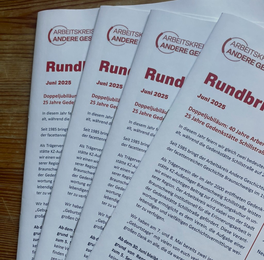 Die aktuelle Ausgabe des Arbeitskreis-Rundbriefs ist da und steht hier zum Download bereit. Druckexemplare finden Sie in der Gedenkstätte Schillstrasse.